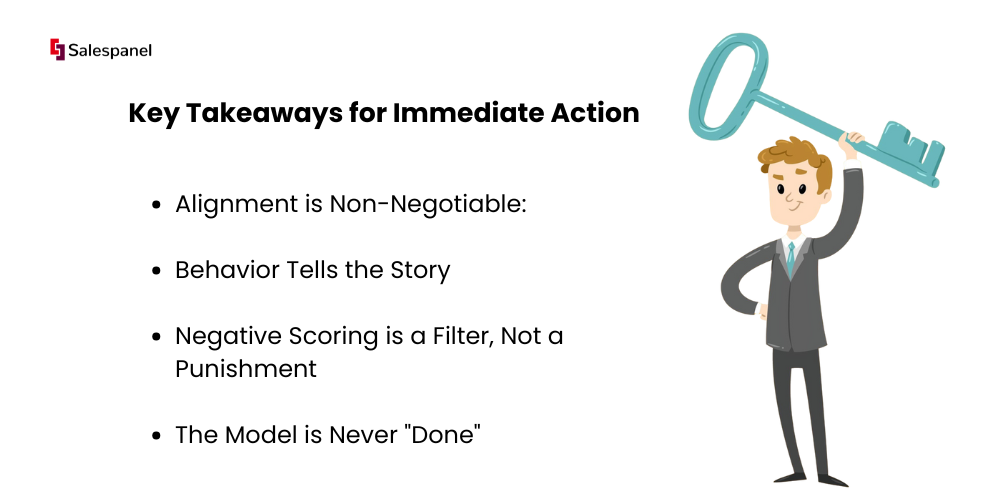 You want to treat your lead scoring model like a product, not a project. Regular reviews, scoring conversion analysis, and sales-need-based model optimisations are key to long-term success.