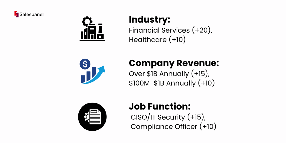 Practical Example: A Cybersecurity Company that targets financial institutions would score leads as follows: