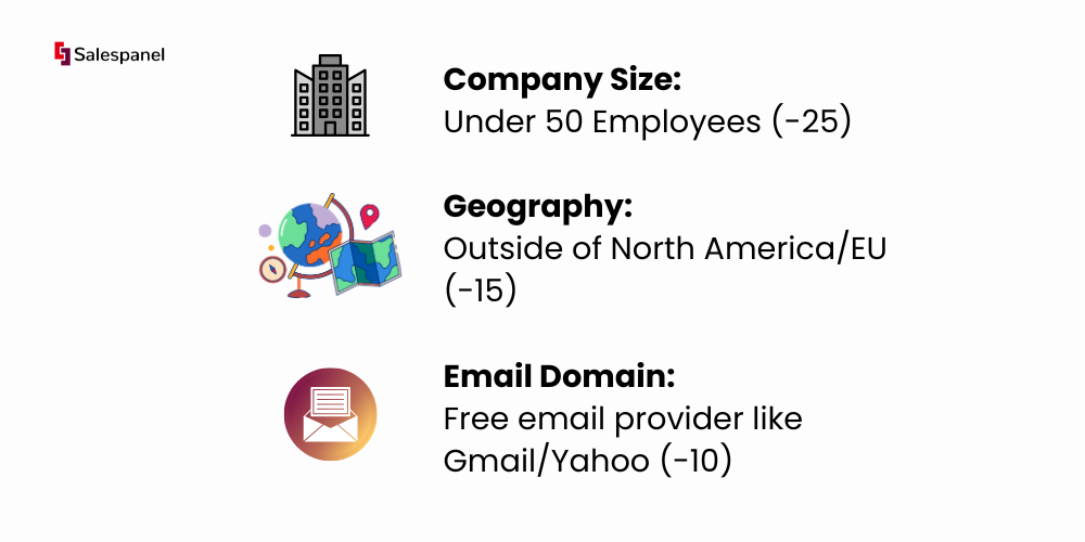 Firmographic & Demographic Negative Scoring: For data that does not fit the ideal customer profile, negatively score.