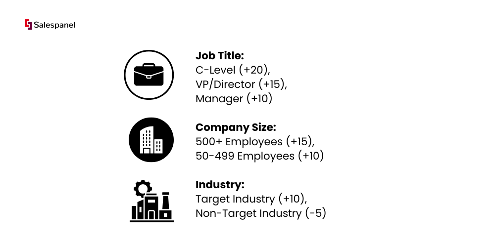 Positive Fit-Based Scoring: Give points to leads that correspond to your ICP characteristics. This allows you to prioritise your most valuable potential customers.
