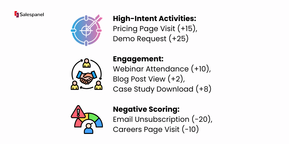 Practical Example: A prospect’s digital body language reveals their buying intent. High-value actions receive more points.