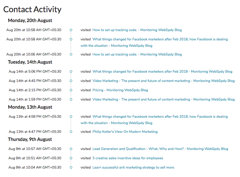 Scoring behavior that you want to score begins with mapping out key actions that indicate movement through your sales funnel. While all behaviors can give you clues, not all have the same value, like a visit to your pricing page holds more weight than a page visit to your blog. Advanced visitor tracking systems can perform this for you.