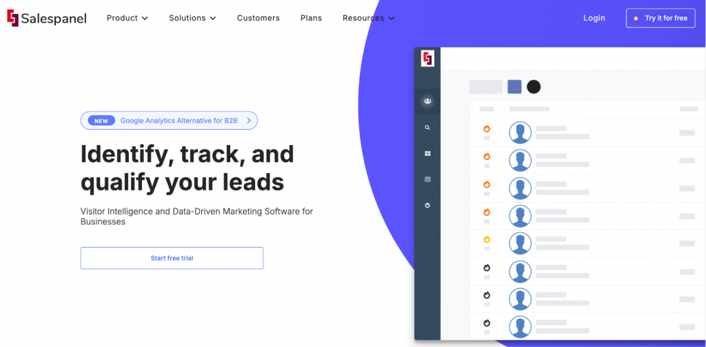 Salespanel.io is a visitor intelligence and data-driven marketing platform made specifically for B2B companies, aimed at identifying, tracking, and qualifying leads.
