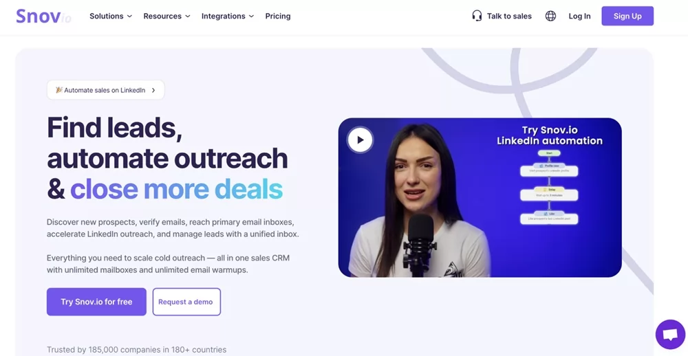 Snov.io is an all-in-one solution for email outreach. The platform integrates prospecting, verifying, and managing campaigns in one integrated system. Its email finder locates contact information across various sources with impressive accuracy rates.