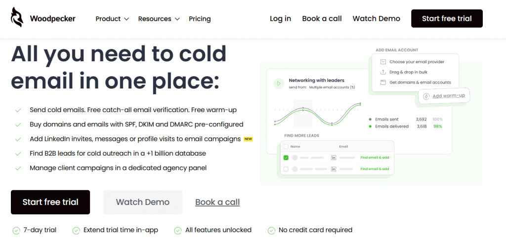 Woodpecker is quite affordable, with paid subscriptions beginning at $29 per month and a 7-day free trial offered.