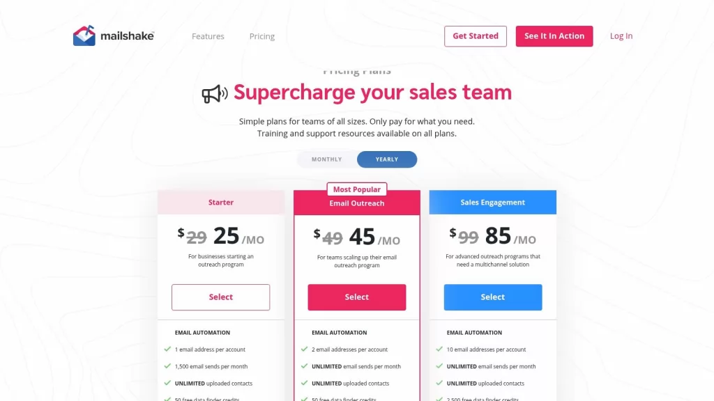 Saleshandy’s is $36/monthly, and each plan includes a 7-day free trial.