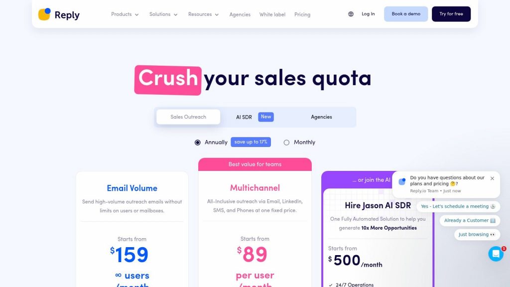 Reply.io is characterized as a highly flexible sales engagement platform designed to scale with teams of any size. It offers a true multichannel outreach strategy employing automated sequences, including email, LinkedIn, SMS, and voice calls. What makes the platform especially great is the flexible packaging and robust feature set that includes the use of AI-driven capabilities for personalization and workflow automation.