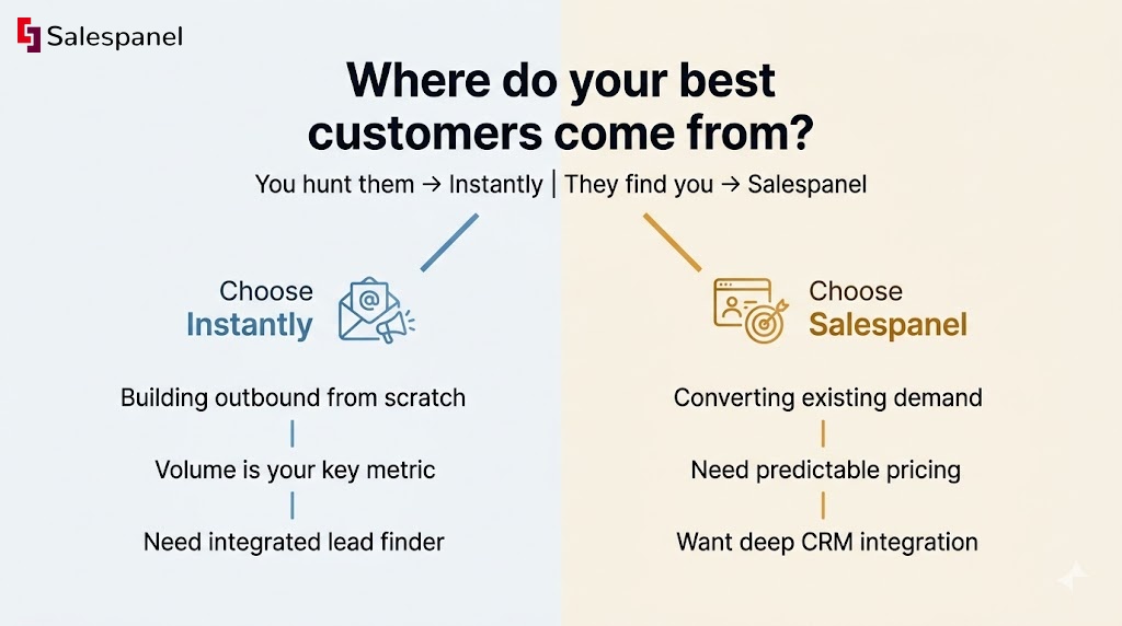 The key trade-off is between breadth and depth. Instantly offers the breadth to reach a massive audience. Salespanel offers the depth to understand the audience you already have. Before committing, ask your team this critical question: Where do our best customers come from? Are they the ones we hunt down, or the ones who find us? Your answer will point directly to the right platform.