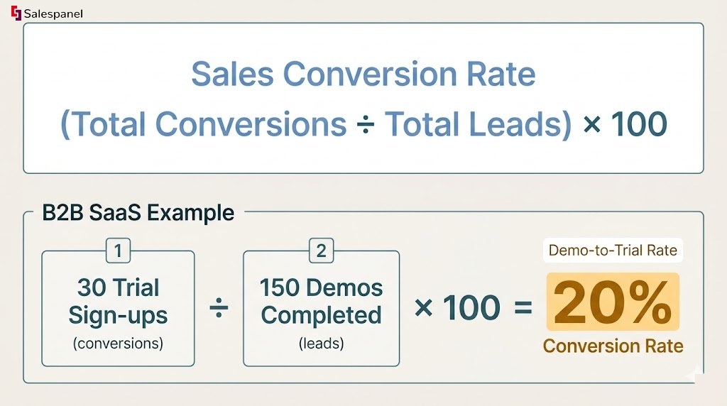 Sales Conversion Rate = (Total Conversions / Total Leads) x 100