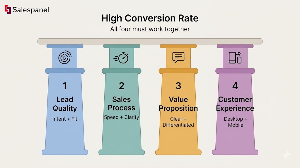 Four primary pillars underpin conversion performance: lead quality, sales process efficiency, value proposition clarity, and the overall customer experience. A deficiency in any one of these areas can compromise the entire structure, regardless of the strength of the others.